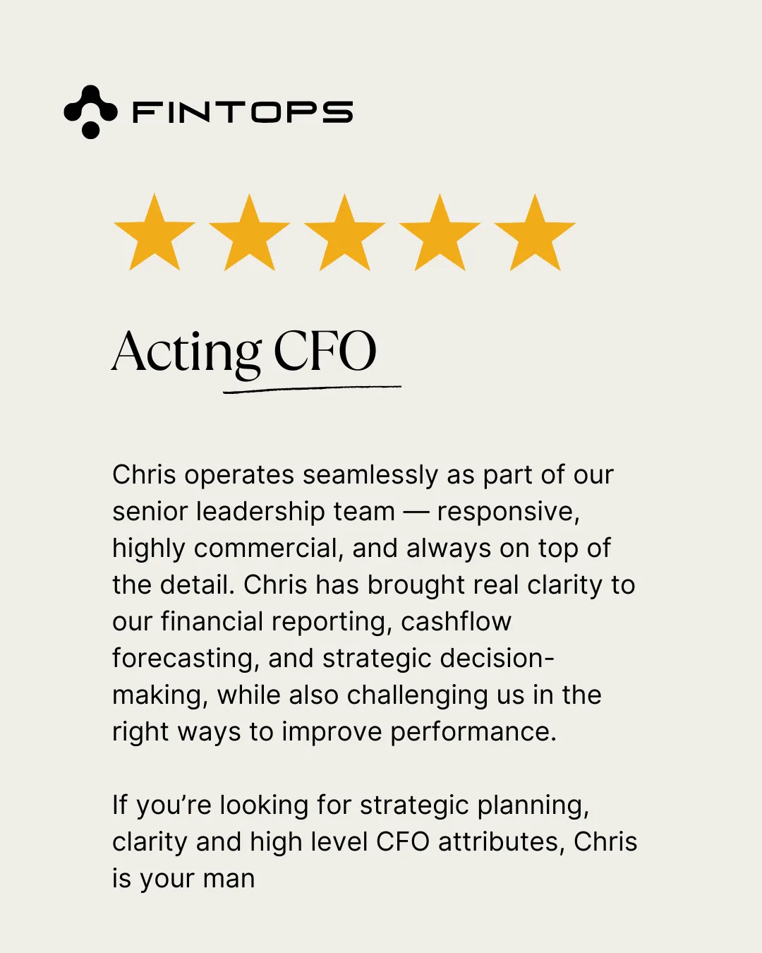 We work as part of your team and can provide support, reassurance and guidance to your Bookkeeper, whilst assisting with Financial Controllership and CFO services.
